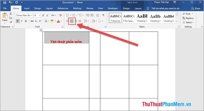 Để căn chỉnh, hãy bôi đen nội dung cần chỉnh và nhấn Center (Ctrl + E) để căn nội dung ra chính giữa ô.