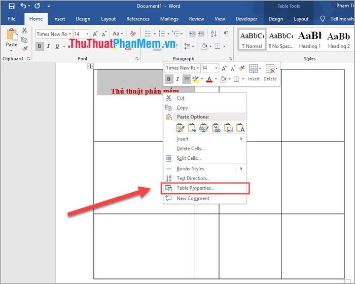 Bước 2. Tiếp theo, nhấp chuột phải vào nội dung đã bôi đen và chọn Table Properties…