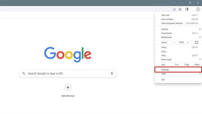 Bước 1: Mở trình duyệt Google Chrome trên máy tính của bạn, sau đó nhấn vào biểu tượng ba dấu chấm ở góc phải màn hình và chọn Cài đặt.