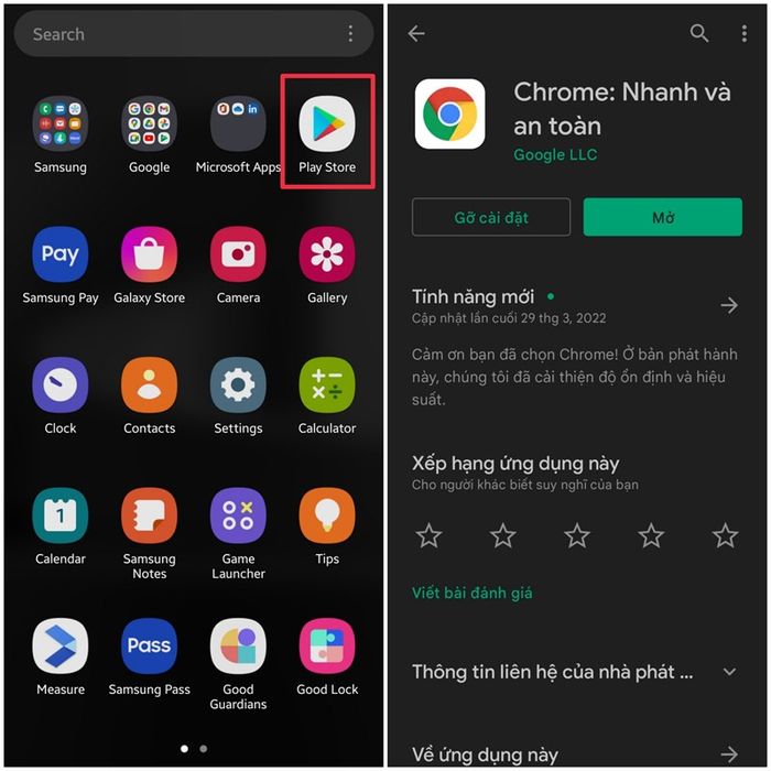Để cập nhật Chrome 100 trên điện thoại, bạn hãy vào Google Play Store và tìm kiếm Chrome, sau đó nhấn vào Cập nhật. Nếu bạn chưa nhận được cập nhật Chrome 100, hãy kiên nhẫn chờ thêm một chút nhé.