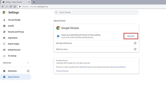 Bước 3: Khi đã tải xong, nhấn vào Khởi động lại để Chrome cập nhật và bắt đầu trải nghiệm phiên bản Chrome 100 mới nhất.
