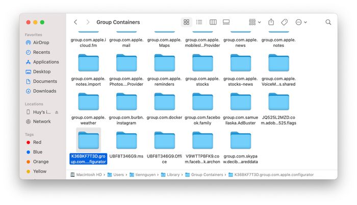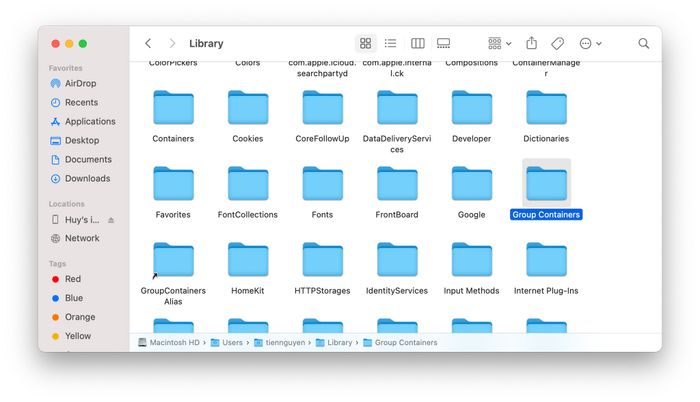 - Sau khi mở thư mục Library, bạn chọn Goup Containers.