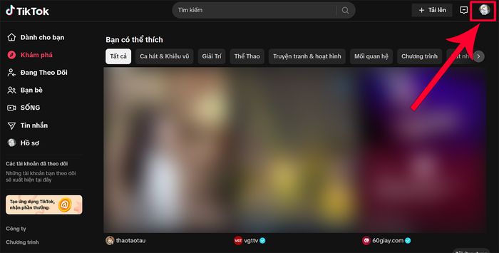 Bước 1: Nhấp vào biểu tượng ảnh đại diện của bạn trên giao diện TikTok máy tính.