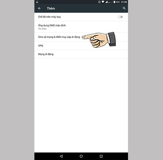 Chọn Chia sẻ mạng và điểm truy cập di động