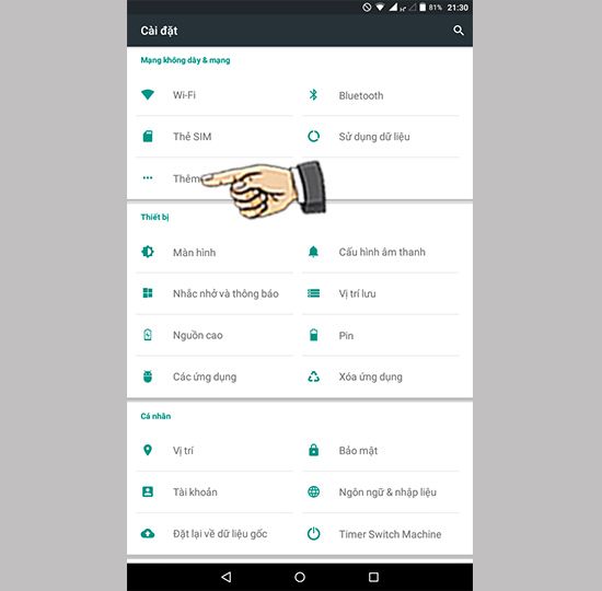 Khả năng phát wifi giúp bạn chia sẻ kết nối 3G qua sóng Wifi với mọi người xung quanh. Thực hiện các bước sau để chia sẻ 3G thành Wifi trên Itel Tab it1702:Bước 1: Mở Cài đặt và chọn Thêm.