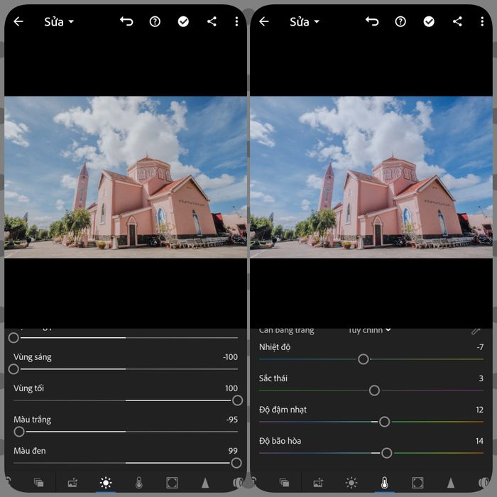 Bóng (tăng hoặc giảm ánh sáng trong vùng tối trên ảnh): Đổ bóng, tăng (+100)