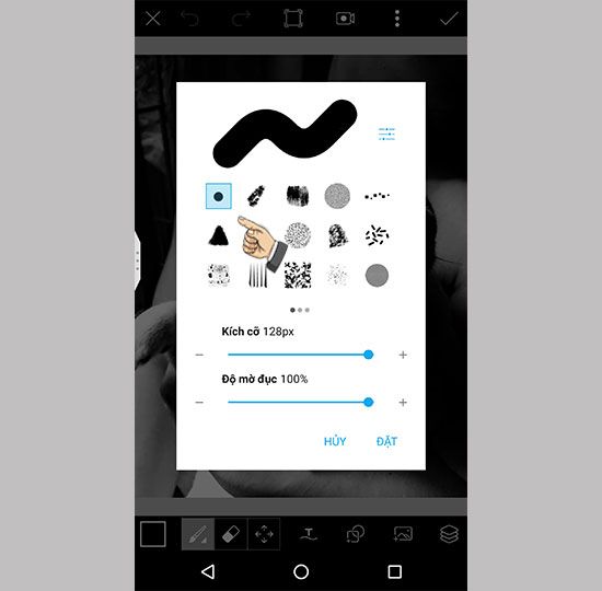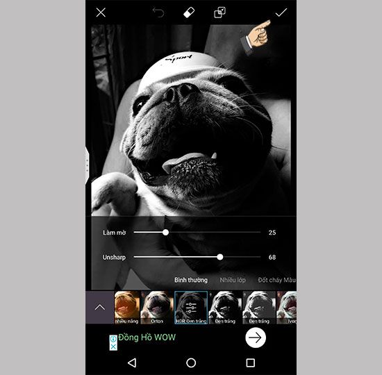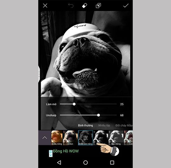 Bước 6: Tiếp tục nhấp vào biểu tượng vẽ >>, chọn tô mờ >>, điều chỉnh kích thước phù hợp và độ mờ để tô mờ vùng viền và các chi tiết nhỏ của ảnh >> Lưu lại.