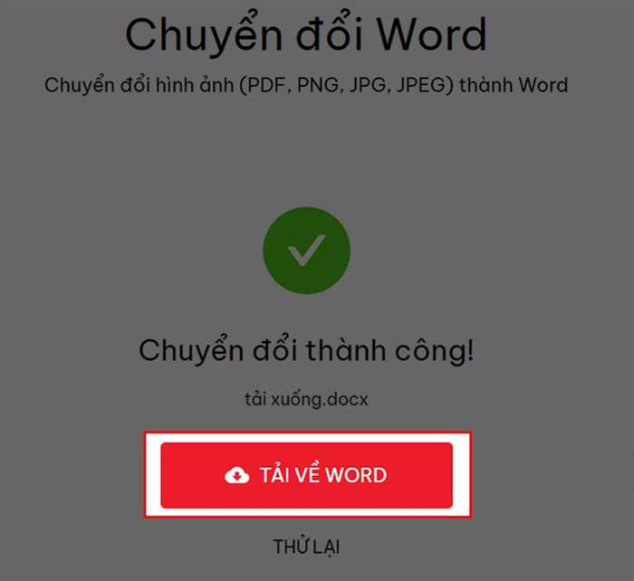 Bước 4: Chờ vài giây nếu dữ liệu ít, hoặc lâu hơn nếu dữ liệu nhiều. Sau khi quá trình chuyển đổi hoàn tất, nhấn Tải về Word.