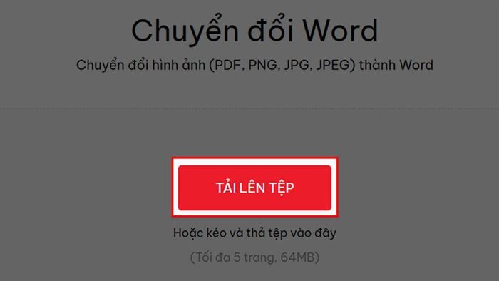 Bước 2: Chọn Tải lên tệp, sau đó chọn tấm ảnh chứa dữ liệu bạn muốn chuyển đổi và đợi web tải ảnh lên.