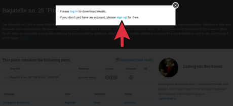 Nếu không có tài khoản, bạn sẽ không thể tải bài nhạc về máy của mình. Điều này là điều quan trọng trên trang web MUSOPEN, nơi tập trung vào âm nhạc cổ điển. Bạn hoặc người thân trong gia đình đều yêu thích âm nhạc cổ điển? Bạn là giáo viên, huấn luyện viên hoặc thủ thư tại một trường nhạc? Hãy nhanh chóng tạo tài khoản trên trang này nhé!