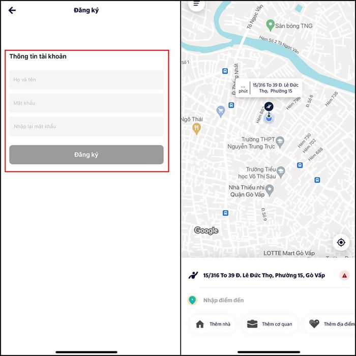 Bước 2: Nhập thông tin tài khoản của Taxi Xanh SM bao gồm tên và mật khẩu > Nhấn Đăng ký. Sau khi nhấn Đăng ký, bạn sẽ cần đăng nhập lại vào hệ thống bằng thông tin tài khoản đã đăng ký trước đó để bắt đầu sử dụng dịch vụ đặt xe.