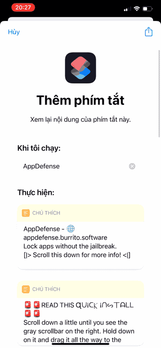 Thêm phím tắt AuthKit 2.0 để sử dụng Touch ID, Face ID và mật khẩu. Tải từ trang web của BurritoSoftware tại đây hoặc từ iCloud ở đây. Sau đó, thêm lối tắt không tin cậy và cấp quyền.Chạy AppDefense để cấp quyền theo Bước 4.