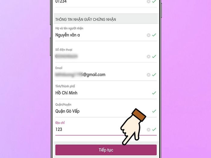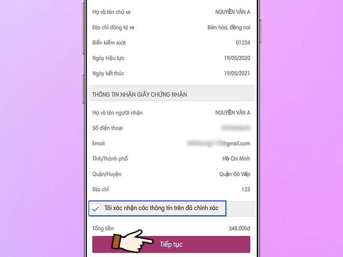 Bước 4: Xác nhận lại thông tin đăng ký để đảm bảo chính xác > Bấm Tiếp tục.