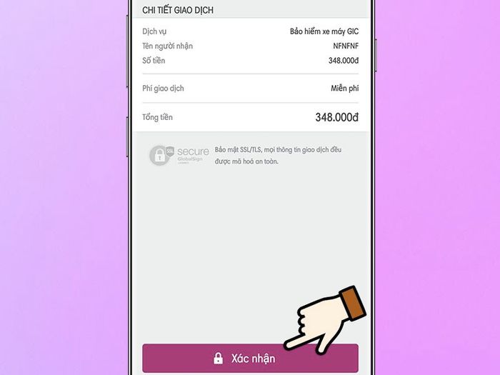 Bước 5: Thực hiện Xác nhận để thanh toán.