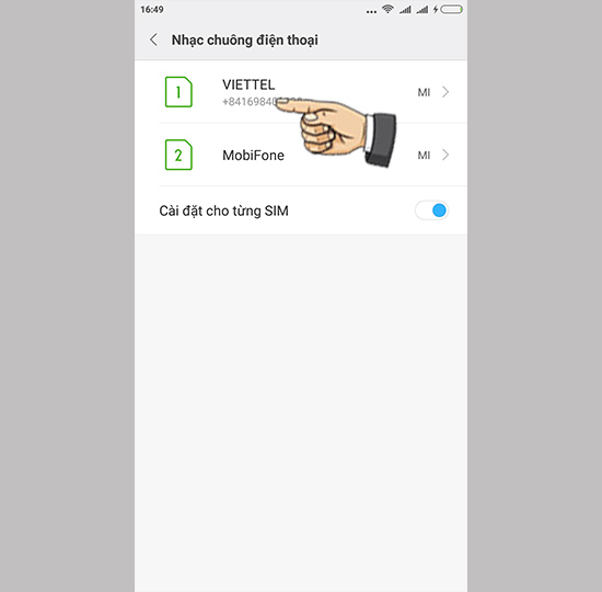 Bước 3: Chọn Sim để cài đặt nhạc chuông.