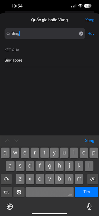Bước 2: Chọn mục "Quốc gia/Vùng" và đổi sang "Singapore".