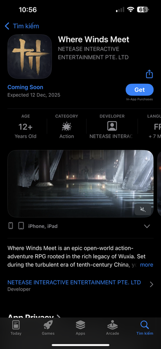 Sau khi hoàn thành, game thủ có thể tìm kiếm Where Winds Meet trên cửa hàng và tải trực tiếp về thiết bị.