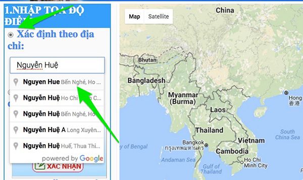 - Phương án 2: Chọn Xác định theo tọa độ, nhập tọa độ nhà bạn. Cách này hiệu quả và chính xác hơn nhiều.