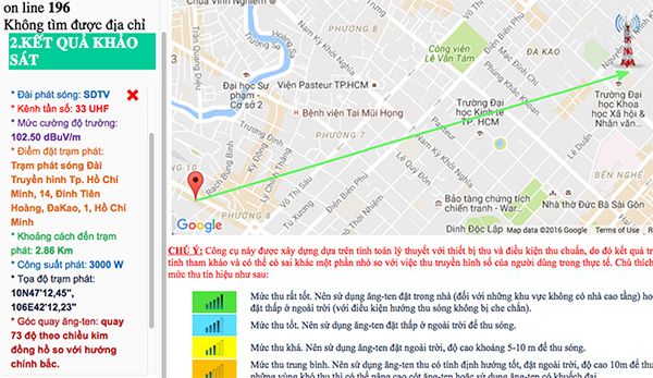 Bước 2: Xác nhận địa chỉ chính xác của bạn, trang web sẽ hiển thị các kênh tần số tương ứng với đài truyền hình. Chọn kênh tần số để xem thông tin như: đài phát sóng, điểm trạm phát, khoảng cách đến trạm phát..., và biểu tượng sóng tại tên kênh để kiểm tra tín hiệu mạnh hay yếu.