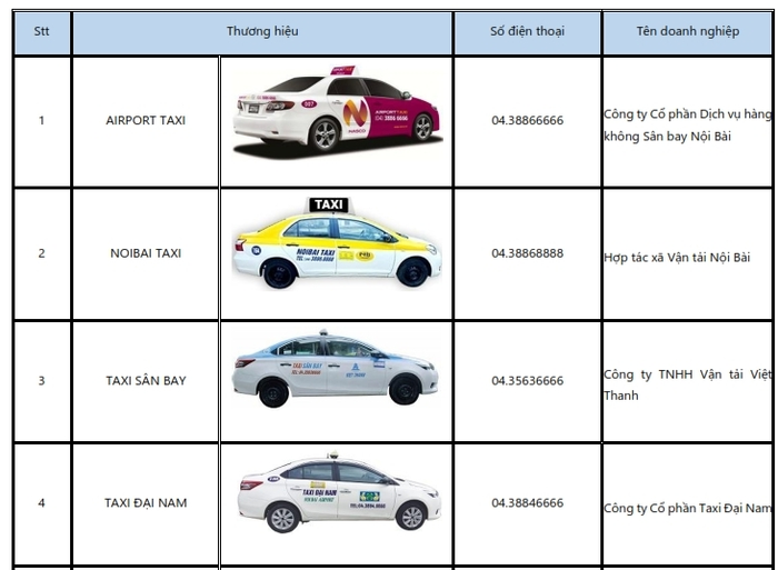 Có tổng cộng 12 doanh nghiệp taxi được cấp phép hoạt động tại Cảng hàng không quốc tế Nội Bài, bao gồm: