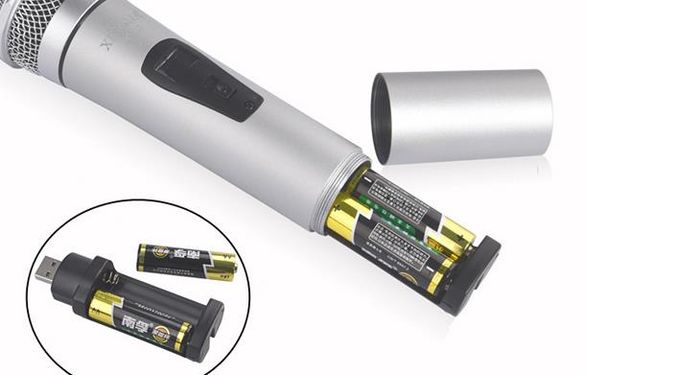 Bước 1: Mở nắp pin của micro và lắp pin vào micro.