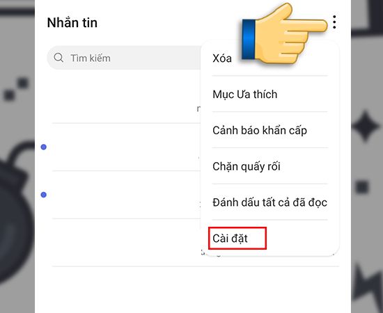 Mở Tin nhắn -> Chọn Biểu tượng 3 dấu chấm ở góc phải trên -> Chọn Cài đặt -> Chọn Nhạc chuông và Rung -> Chọn Âm báo SIM 1 hoặc 2 -> Chọn Nhạc bạn thích.