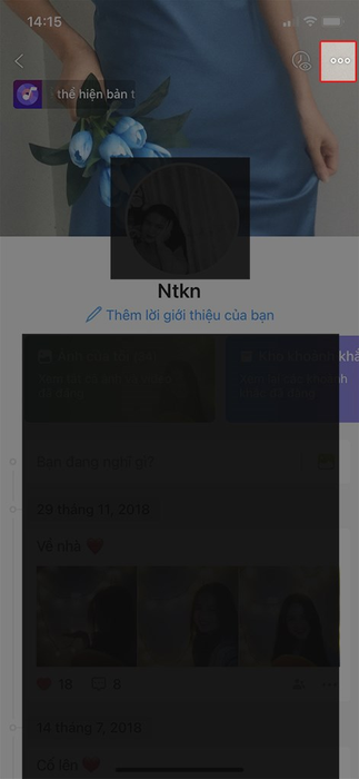 Nhấn vào biểu tượng 3 chấm để mở giao diện đổi thông tin.
