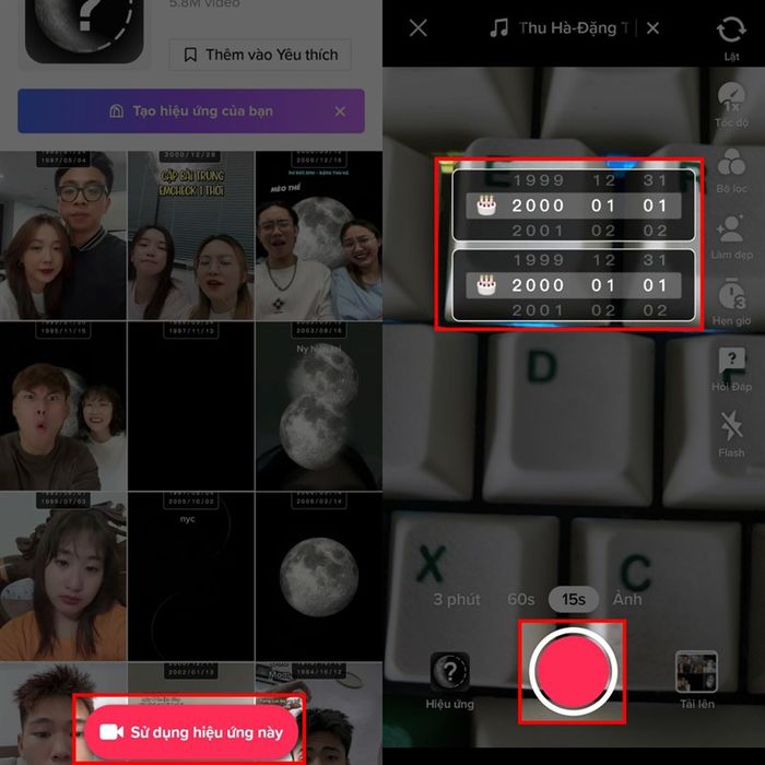 Bước 2: Tiếp theo, nhấn vào nút đỏ 'Thử hiệu ứng này' dưới màn hình. Chọn ngày sinh của bạn và người yêu trong 2 ô trên màn hình để bắt đầu quay.