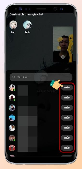 Tại đây chọn bạn bè để tham gia cuộc trò chuyện