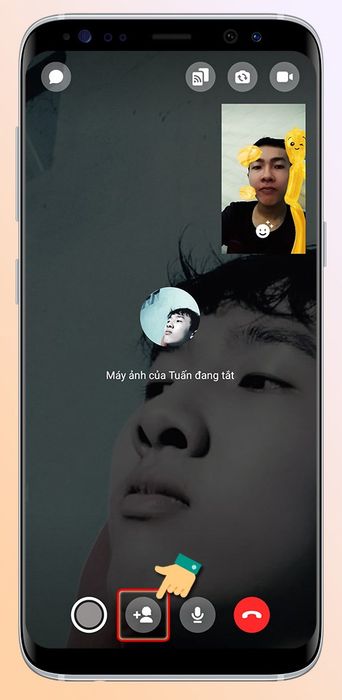 Bước 4: Bạn bè của bạn nhận cuộc trò chuyện, muốn thêm thành viên, nhấn vào biểu tượng Dấu Cộng dưới màn hình, sau đó tìm bạn bè bạn muốn thêm