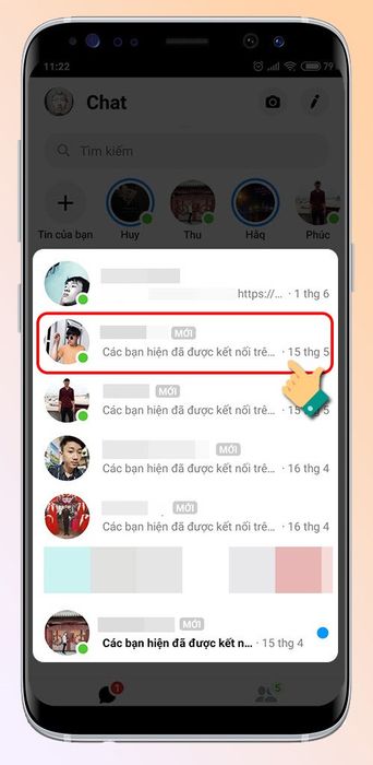 Bước 1: Mở ứng dụng, tại giao diện Messenger, tìm kiếm bạn bè muốn liên hệ
