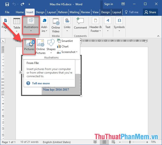 Bước 9: Đặt Con Trỏ Chuột Tại Vị Trí Cần Chèn Ảnh Của Nhãn Đầu Tiên -> Vào Thẻ Chèn -> Hình Ảnh: