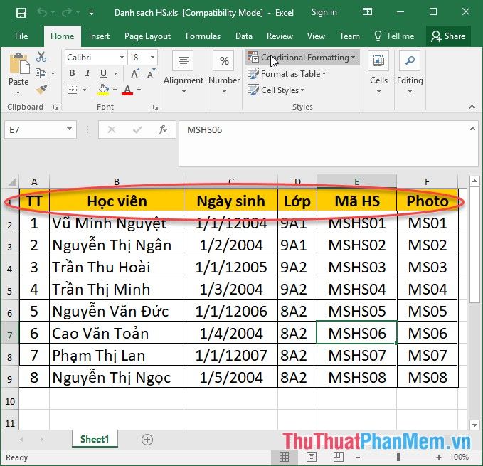 Chú ý rằng File Dữ Liệu từ Excel phải Có Hàng Tiêu Đề Ở Đầu Tiên, Do Đó Bạn Không Nên Thêm Bất Kỳ Nội Dung Nào Bên Trên:
