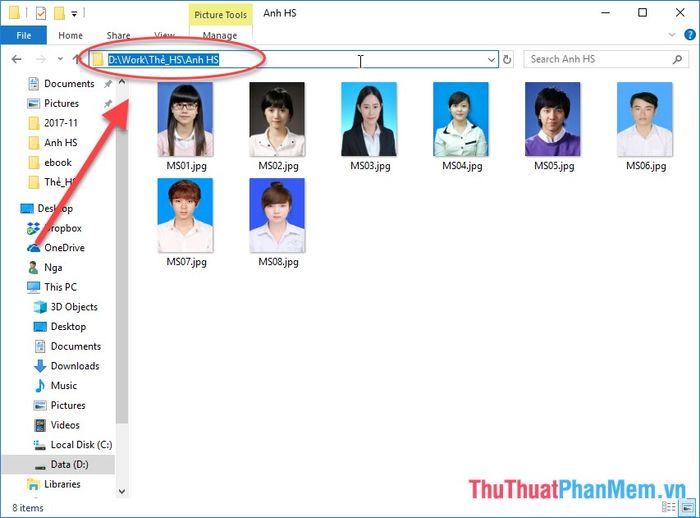 Bước 12: Quay Trở Lại Thư Mục Chứa Hình Ảnh -> Sao Chép Đường Dẫn Tới Thư Mục: