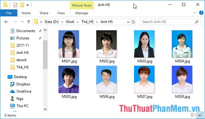 - Tên file ảnh cần chèn phải trùng và tương ứng với thứ tự học sinh trong file Excel