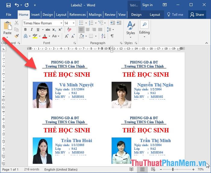Để Tạo Mẫu Thẻ Học Sinh, Thực Hiện Theo Các Bước Dưới Đây: