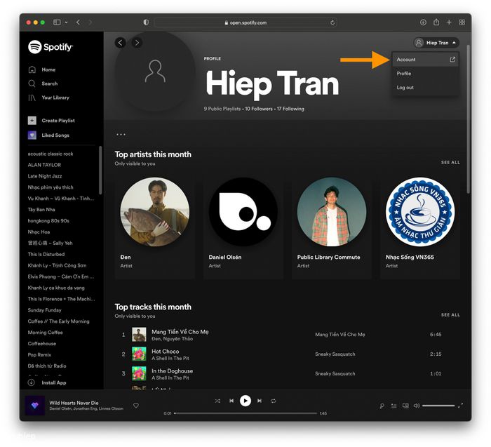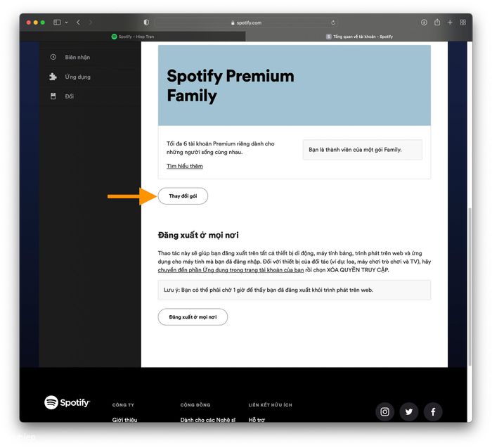 Hãy truy cập vào trang web spotify.com, đăng nhập vào tài khoản của bạn và sau đó vào phần Tài khoản.