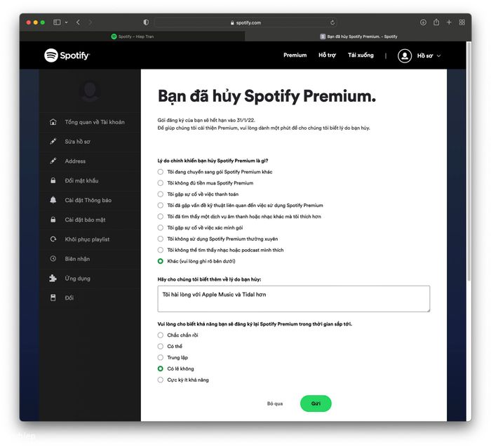 Sau một số sự cố gần đây liên quan đến Spotify, tôi nhận ra rằng tôi không thường xuyên sử dụng dịch vụ này mặc dù vẫn đang trả phí cho gói Premium. Hiện tôi đã chuyển sang sử dụng Apple Music và Tidal. Và nếu bạn muốn hủy gói Premium, đây là hướng dẫn đơn giản cho bạn.