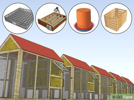 Mua sắm trang thiết bị cần thiết cho trang trại gà. Điều này bao gồm các thiết bị như máy sưởi, lồng nuôi, thùng trứng, máng ăn và các thiết bị khác phù hợp với quy mô của bạn.