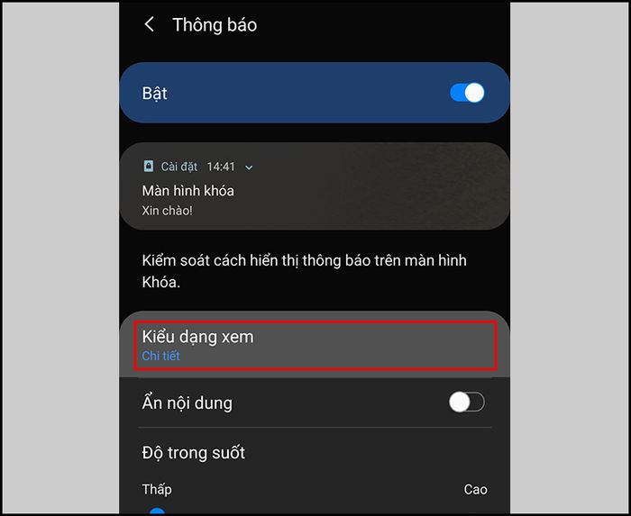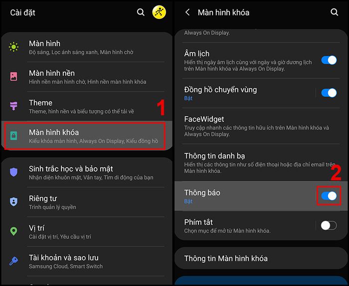 - Bước 1: Kích hoạt thông báo trên màn hình khóa