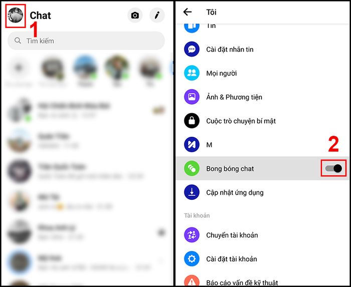 - Bước 1: Kích hoạt bong bóng chat trong Messenger