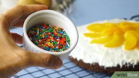 Thêm cốm màu. Cốm màu là cách tuyệt vời để bổ sung thêm màu sắc cho bánh. Bạn cũng có thể trộn cốm màu vào bột bánh trước khi nướng.