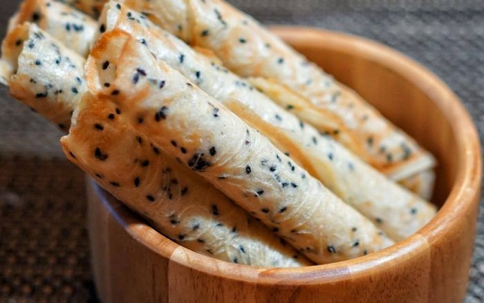 Hương vị của bánh quế thơm phức, giòn rụm, phối hợp với vị ngọt béo của bơ, trứng và sữa tươi cùng với vị bùi của hạt mè đen, tạo ra những chiếc bánh quế thơm ngon, lôi cuốn, đúng chuẩn hương vị của ngày xưa.