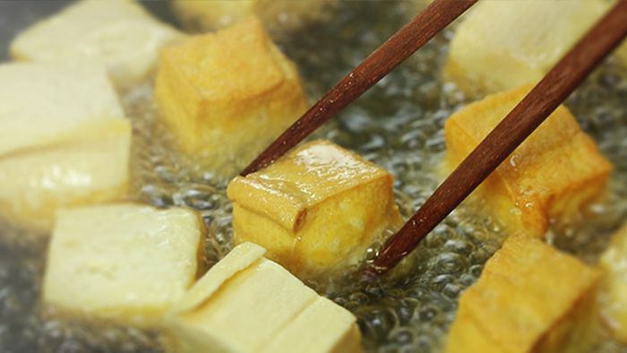 2. Đậu hủ rán – Đậu hủ non vỏ vàng rụm, phần lõi như tan chảy