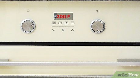 Đốt nóng lò nướng ở nhiệt độ thấp nhất có thể. Hầu hết lò nướng có thể điều chỉnh nhiệt độ thấp nhất ở mức 93 độ C. Nếu sử dụng lò nướng điện, đợi khoảng 10-15 phút để lò nóng. Lò nướng ga sẽ mất khoảng 5-10 phút để nóng lên. Đặt vỉ nướng vào vị trí thấp nhất.