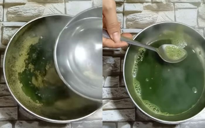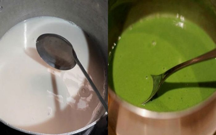 Khi nước sữa bắt đầu sôi, tiếp tục đổ nước matcha đã pha ở bước 1 vào nồi và sử dụng đũa khuấy đều cho nước matcha hòa tan vào sữa, đun tiếp cho đến khi hỗn hợp sôi và sôi lăn tăn một lần nữa, sau đó tắt bếp và để nguội.