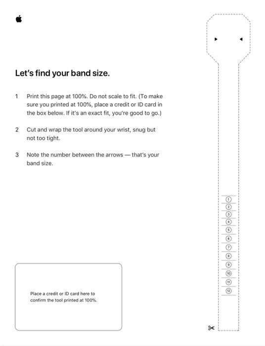 Đặc điểm nổi bật của hai dòng dây này là chúng được thiết kế thành một vòng tròn liền lạc, không có bất kỳ khóa cài, ngàm hoặc nấc đeo nào cả. Người dùng sẽ đeo đồng hồ vào cổ tay giống như đeo vòng tay, điều này đòi hỏi họ phải chọn kích thước dây đúng đắn. Apple đã sản xuất ra 12 kích thước dây khác nhau cho cả hai loại dây đeo này.Để chọn kích thước dây đúng đắn, Apple đã cung cấp một tài liệu hướng dẫn tự đo tại nhà như sau:Đầu tiên, hãy tải tài liệu này về từ đường link sau: Link