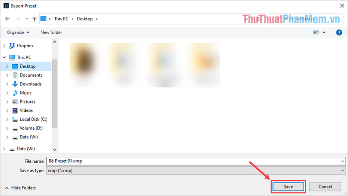 Bước 5: Một cửa sổ Export Preset sẽ hiển thị, bạn tiến hành đặt tên và nhấn Save để hoàn tất.