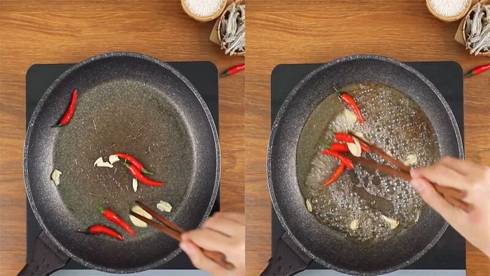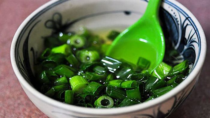 Sau đó, đun sôi 2-3 muỗng canh dầu ăn và từ từ thêm vào hành lá, nhẹ nhàng khuấy đều.