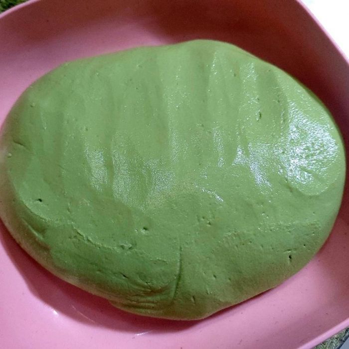 Sau đó, hòa quyện 250 g bột nếp với 40 g bột gạo và khuấy đều vào nước cốt rau ngót. Tiếp theo, nhào bột cho đến khi tạo thành khối bánh mềm mại trong khoảng 10 phút, đảm bảo bột không bám vào tay.